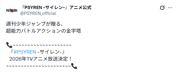 岩代俊明漫画《PSYREN》TV动画化,2026年播出